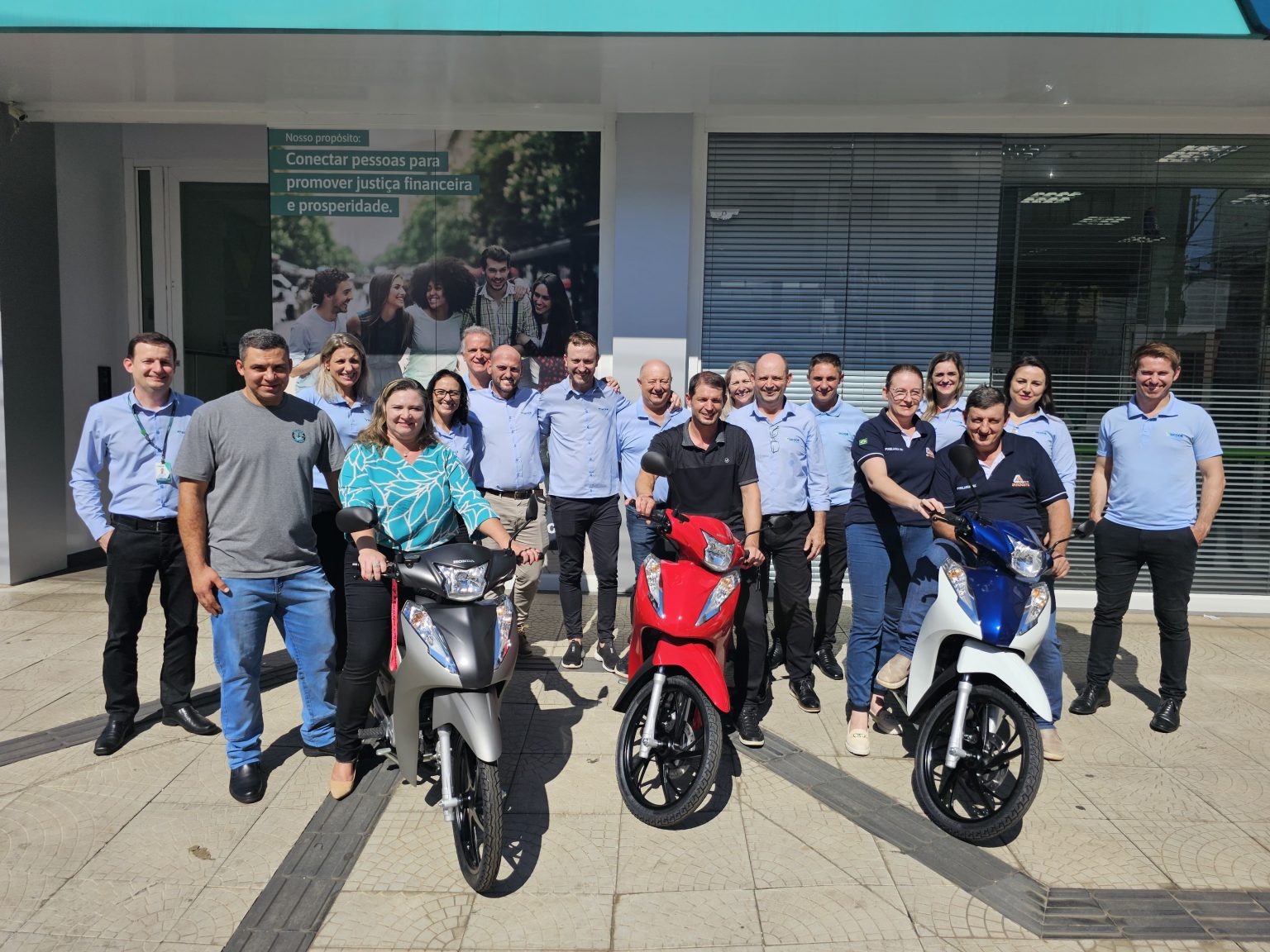 O ato de entrega das motos aconteceu em frente à sede administrativa da instituição, localizada em Concórdia (SC), reunindo os três cooperados felizardos, funcionários, membros do Conselho de Administração e representantes da imprensa local. Os ganhadores foram: