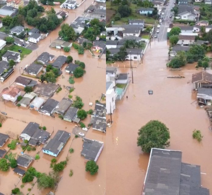 Já em Ponte Serrada, a situação não foi diferente, com a Rua Frei Caetano e a Avenida 15 de Novembro, no Centro, completamente alagadas. Bairros como São Sebastião e o distrito de Baía Alta também enfrentaram prejuízos, com diversas ruas submersas.