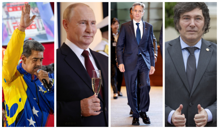 Nicolás Maduro, Vladimir Putin, Antony Blinken e Javier Milei