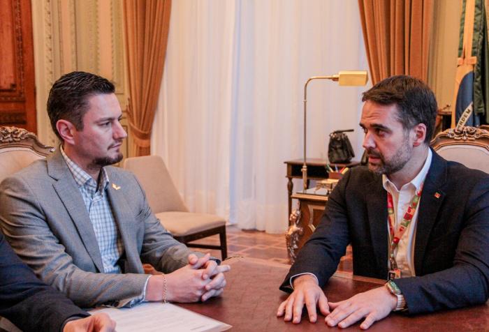 O presidente da Famurs e prefeito de Barra do Rio Azul, Marcelo Arruda, esteve reunido com o governador do Estado, Eduardo Leite, no fim da tarde desta quarta-feira (7/08). Na pauta do encontro, as demandas cruciais dos municípios gaúchos, em especial, a necessidade de recursos para os acessos asfálticos e a recuperação de estradas vicinais.