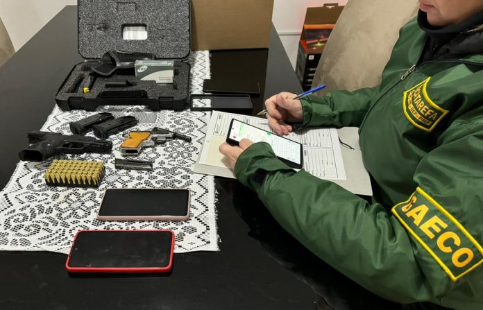 Durante as diligências foi constatado que um dos investigados possuía duas armas de fogo sem o necessário registro, sendo, então, conduzido à delegacia para a lavratura do auto de prisão em flagrante.