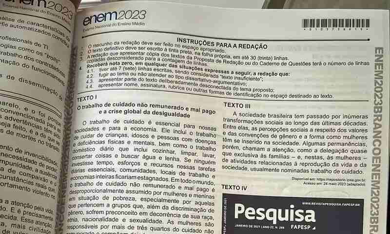 No dia 3 de novembro, primeiro dia do exame, os participantes deverão escrever um texto dissertativo-argumentativo de até 30 linhas. Será proposta uma situação-problema, que servirá de base para o desenvolvimento da redação.