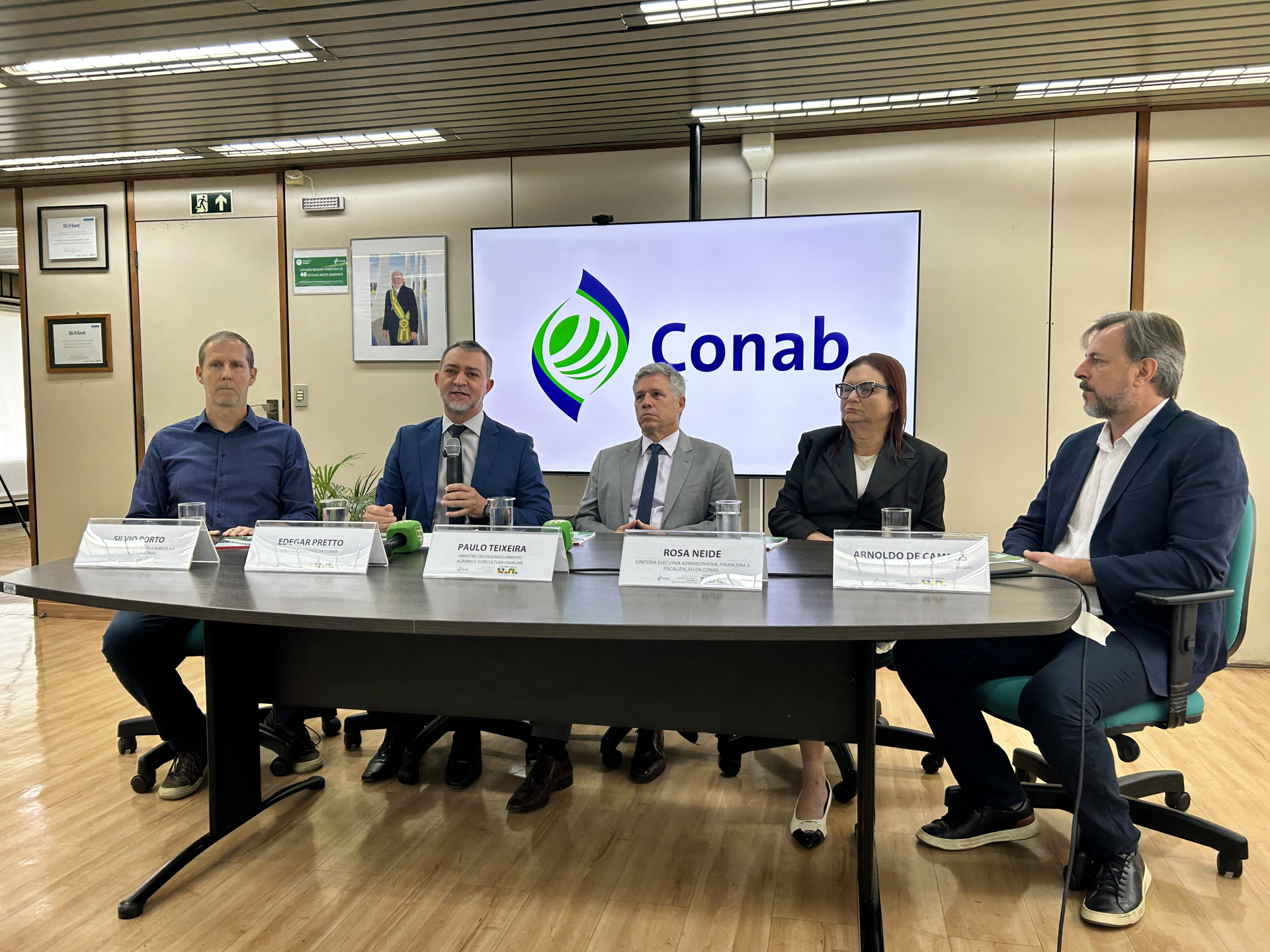 O anúncio da ação foi feito nesta quinta-feira (7), durante coletiva de imprensa que contou com a participação do ministro do Desenvolvimento Agrário, Paulo Teixeira; do presidente da Conab, Edegar Pretto; da diretora Administrativa, Financeira e de Fiscalização, Rosa Neide; e dos diretores de Política Agrícola e Informações, Sílvio Porto, e de Operações e Abastecimento, Arnoldo de Campos.