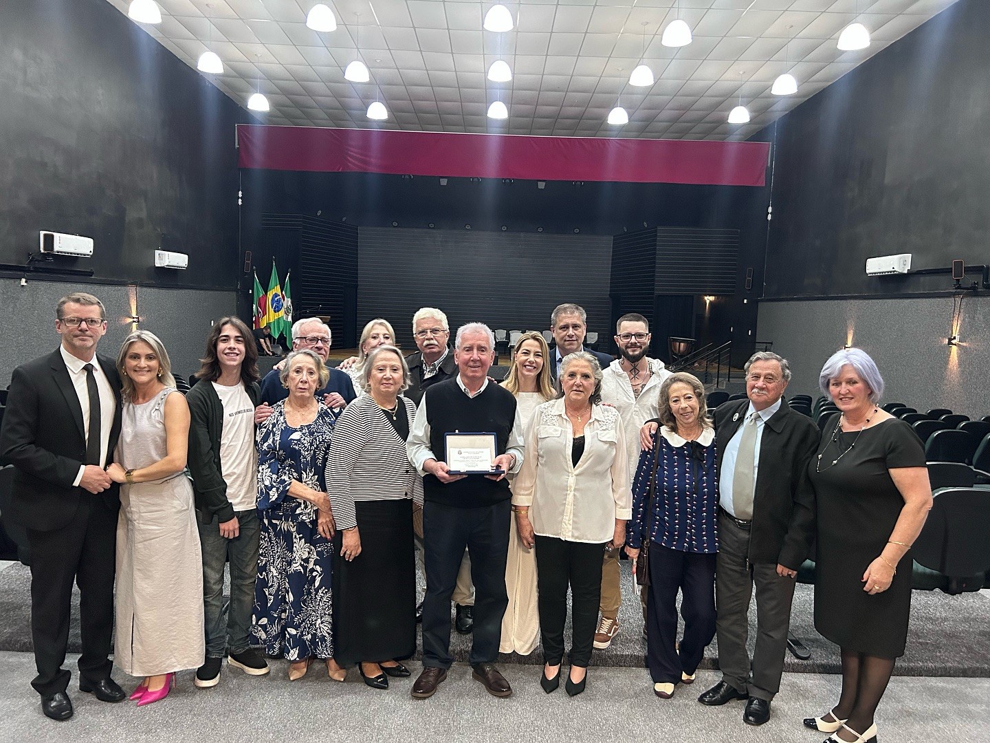 Logo após a fala, os representantes da família Burin subiram ao palco para receber uma placa de agradecimento do município de Gaurama. Em seguida, em reconhecimento aos esforços na conclusão das obras do Cineteatro, a engenheira Marinês Langoski, Elton Schuk e Cléio Antônio Noviski também foram chamados ao palco para receber uma placa de agradecimento.