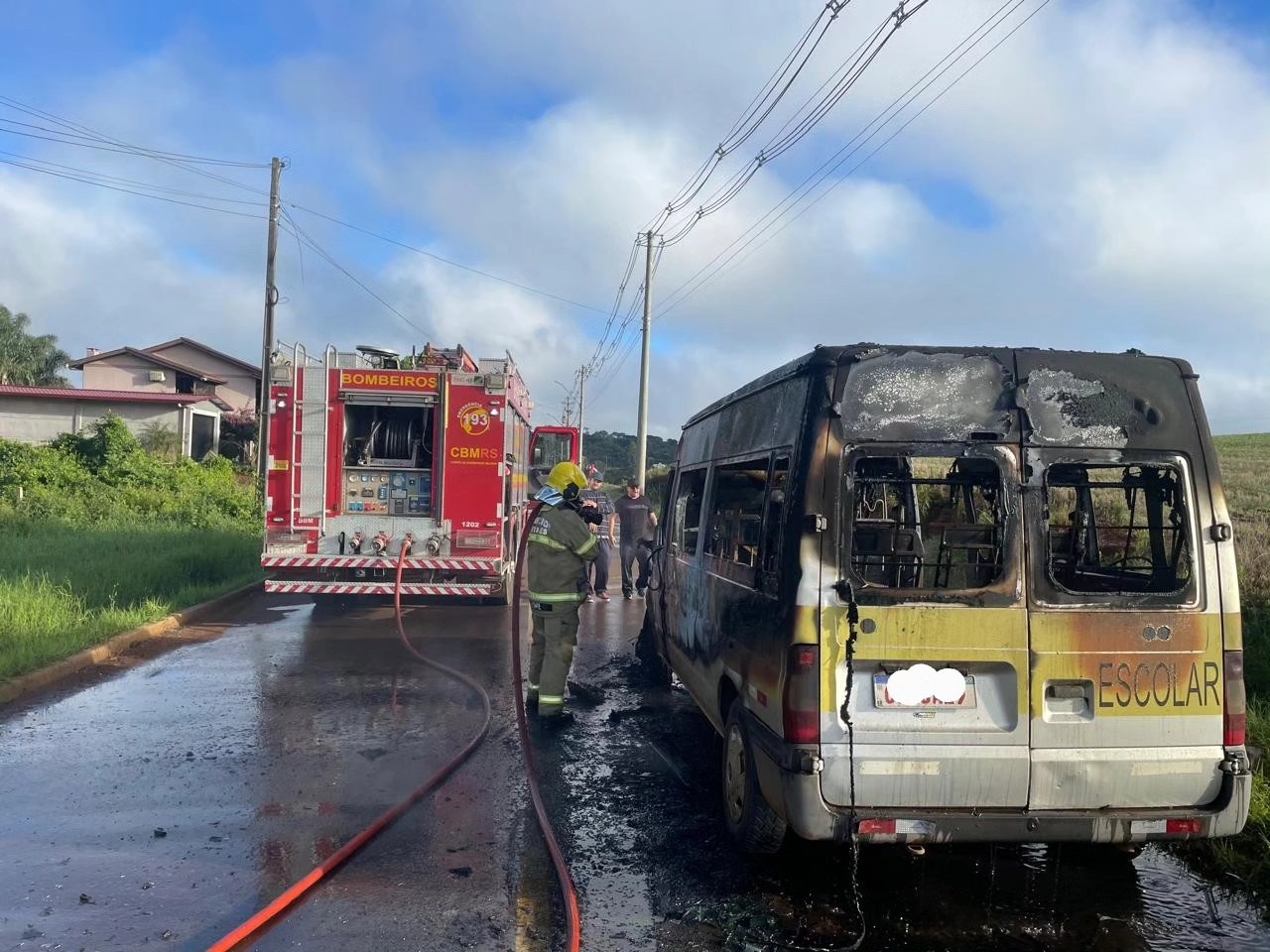 Incêndio destruiu uma van escolar no início da manhã desta terça-feira (17), na ERS-211, proximidades do local conhecido como Verdureiros, em Erechim.