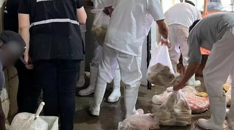A ação ocorreu no domingo (22/12), no âmbito da Operação Verão Total, com apoio da Brigada Militar. O local atuava irregularmente, armazenando carnes e produzindo tripas sem inspeção sanitária, em um estacionamento. Os fiscais encontraram carnes vencidas e em estágio de putrefação.
