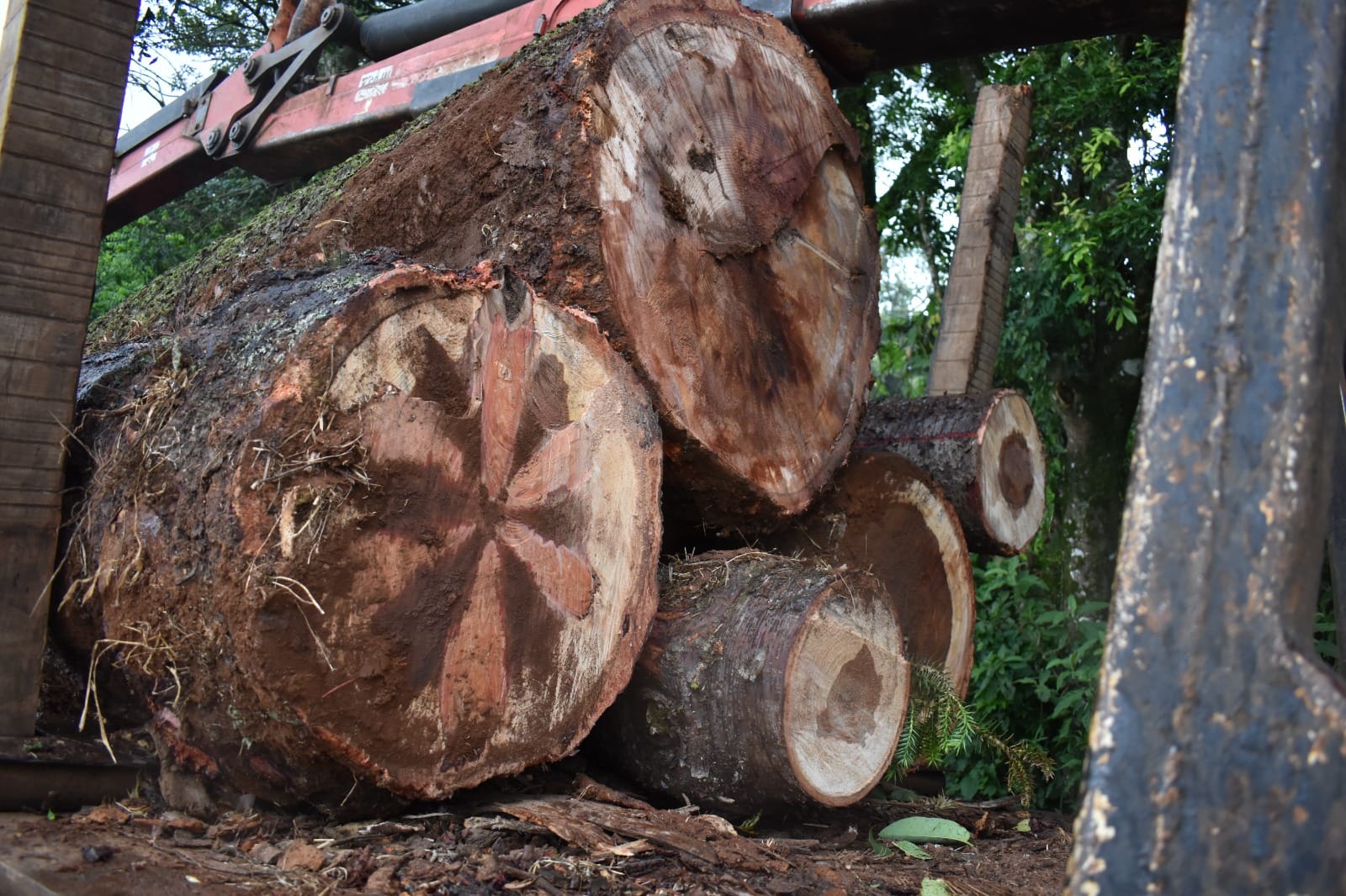 Realizado a abordagem o condutor foi identificado e não apresentou nota fiscal e o Documento de Origem Florestal (DOF), diante das informações foi realizado levantamento da carga através de medições que onde foi constatado uma carga com cinco pinheiros brasileiros num total de 8,67 metros cúbicos.