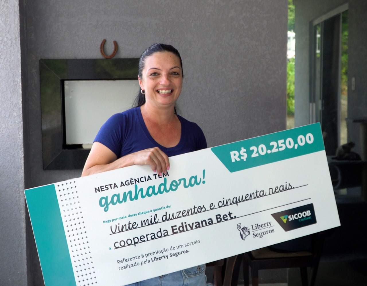 A cooperada Edivana Bet, cliente da agência 01 do Sicoob Crediauc em Concórdia, foi a grande vencedora do sorteio mensal da Liberty Seguros, recebendo um prêmio no valor de R$ 20.250,00. Edivana, que fez o seguro de sua residência, participou do sorteio a nível nacional promovido pela seguradora.