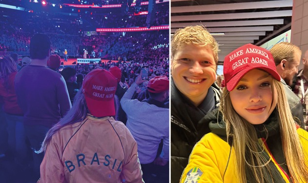 A erechinense estava com uma jaqueta amarela, escrito Brasil e um boné com os dizeres: “Make America Great Again”, traduzindo “Faça a América Grande Novamente”.