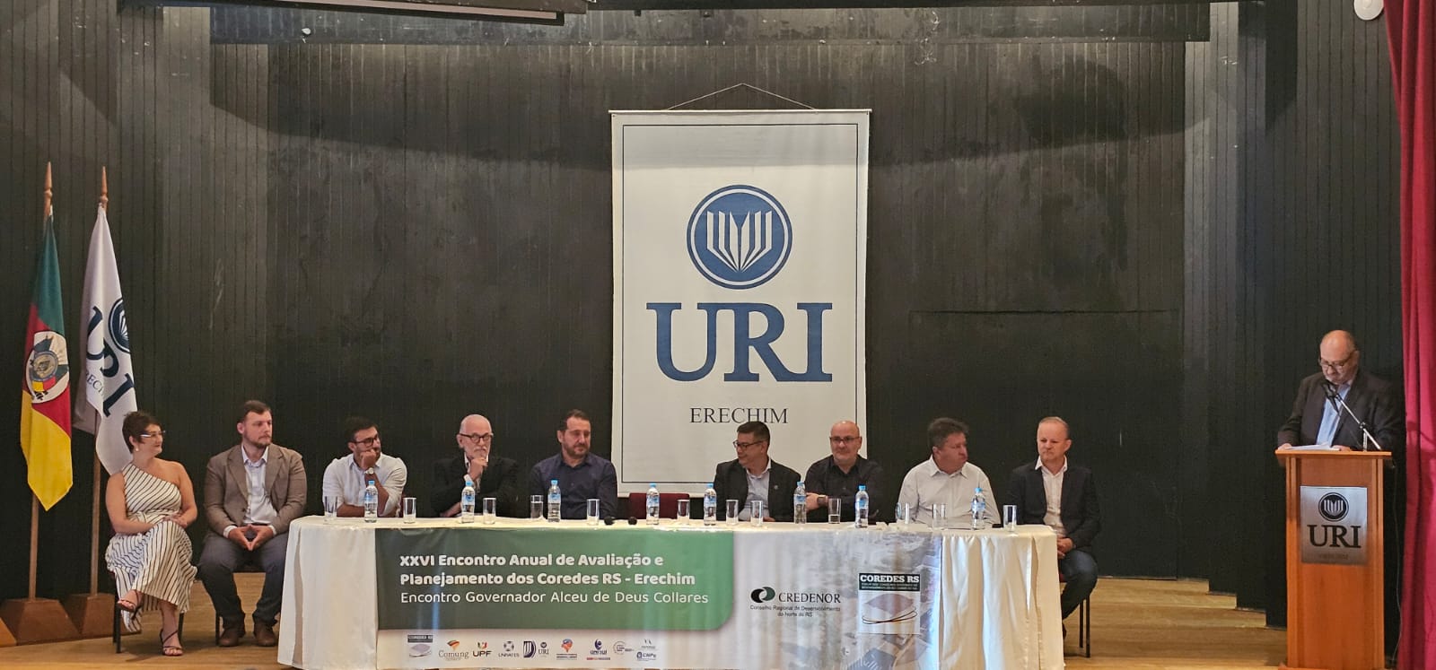 Pela primeira vez, Erechim sediou o Encontro Anual de Avaliação e Planejamento dos Coredes do Rio Grande do Sul, que reuniu representantes dos Conselhos Regionais de Desenvolvimento (Coredes), nesta sexta-feira (21), no Salão de Atos da URI, para a sua 26º edição, que homenageou o ex-governador, Alceu de Deus Collares, idealizador dos Conselhos Regionais de Desenvolvimento. Os Coredes foram legalmente constituídos, em 1994, contemplando 28 regiões do Estado.
