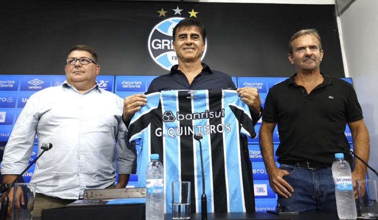 O treinador Gustavo Quinteros foi demitido pelo Grêmio nesta quarta-feira (16) após a derrota para o Mirassol por 4 a 1, pela quarta rodada do Campeonato Brasileiro. O treinador nascido na Argentina e naturalizado boliviano tinha sido contratado em 28 de dezembro, após se destacar pelo Vélez Sarsfield. Em 18 jogos, o comandante teve aproveitamento de 57%, com oito vitórias e cinco empates. Em coletiva de imprensa, após o jogo, o presidente Alberto Guerra afirmou que ainda não há plano para um novo técnico. “Não tinha (planos), porque estava muito confiante que pudéssemos retomar o caminho das vitórias. Não é uma tarefa fácil. A própria seleção brasileira não consegue. Os clubes que trocaram. Temos que levar em consideração”, declarou.