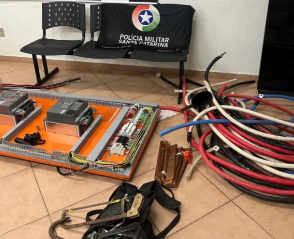 Durante a ação, os policiais localizaram com os suspeitos ferramentas elétricas e manuais, um painel regulador de tensão e diversos fios de rede, todos furtados do local.