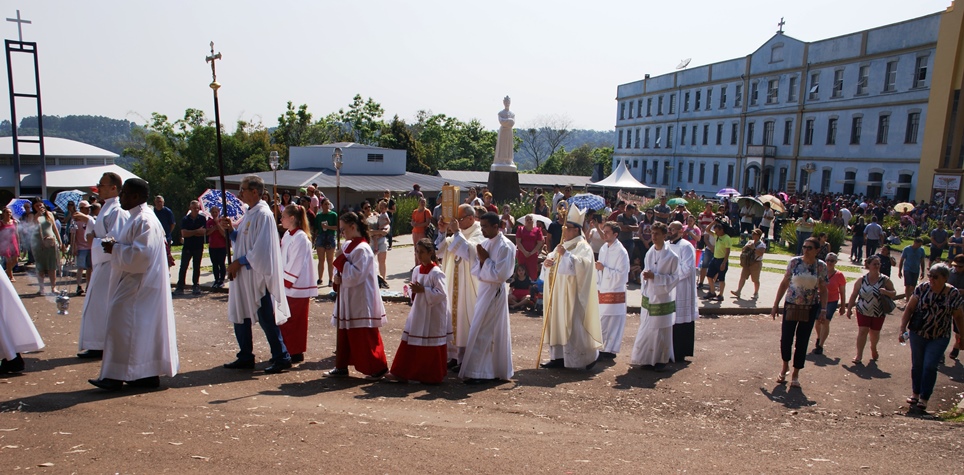 Em dia de calor, grande número de pessoas participam da romaria da Sa...
