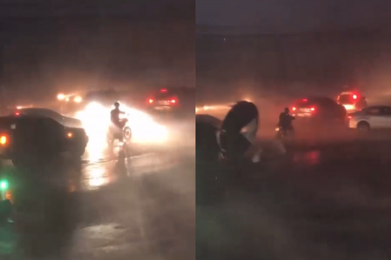 Vídeo: vento arrasta motociclistas e arranca placa comercial em Chapecó