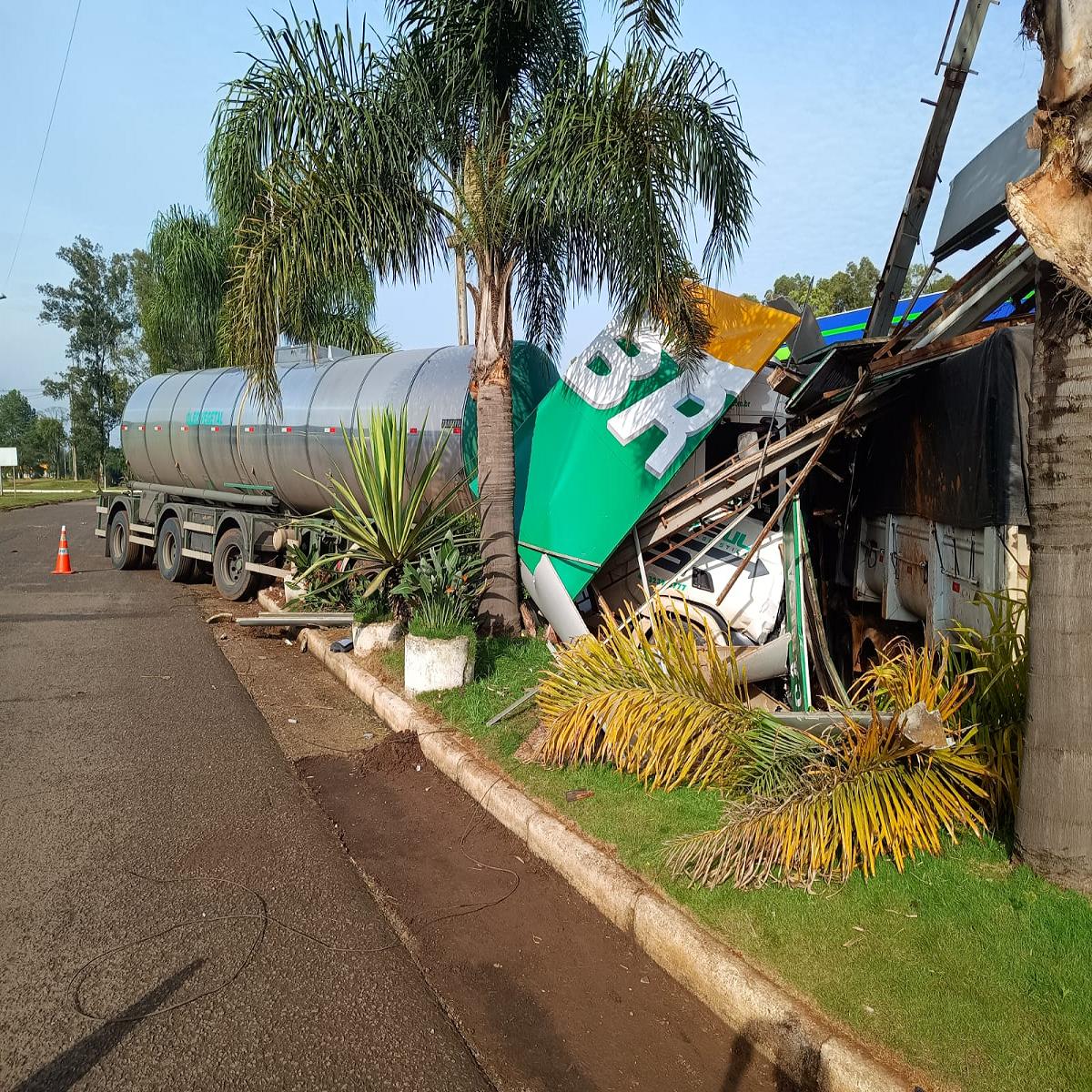 Caminhão tanque sai da pista e invade pátio de posto de combustíveis,...